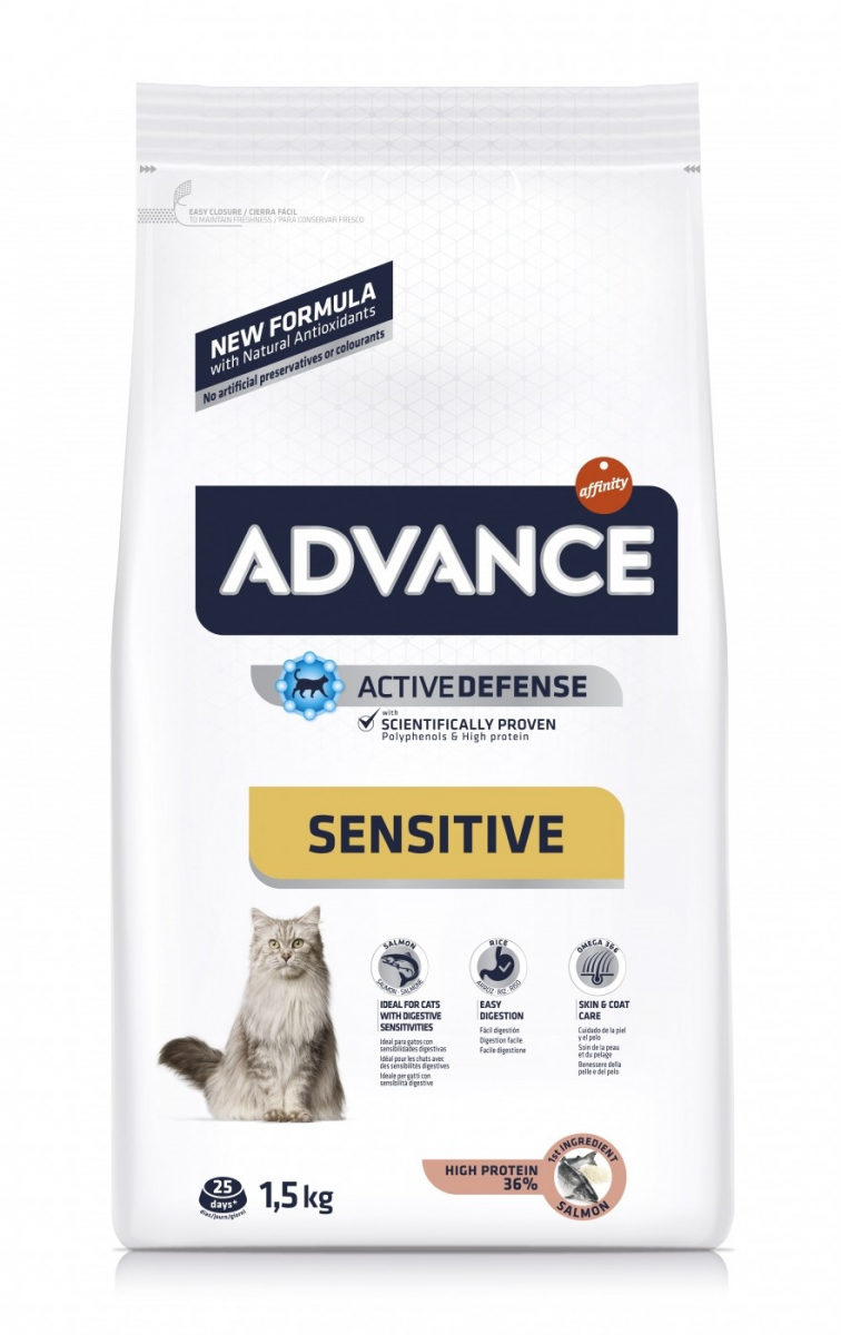 La reputazione del marchio ADVANCE è ben consolidata! Questa vasta gamma di alimenti ti permetterà di indirizzare e rispondere esattamente alle esigenze del tuo animale domestico. Che sia per un gatto sano o affetto da una patologia specifica, Advance ti offre una soluzione adeguata e completa. Le Crocchette per gatti sensibili Advance Adult Sensitive con Salmone sono raccomandate per gatti adulti da 1 a 10 anni. Contengono un alto contenuto di salmone, una fonte di proteine ??di alta qualità e altamente digeribili e ricche di acidi grassi essenziali. Aiutano a proteggere le funzioni vitali del tuo gatto e contribuiscono a un pelo lucido e una pelle sana. A causa della loro alta digeribilità, sono ideali per i gatti con una sensibilità alimentare.